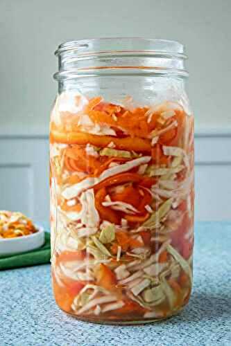 A traditional sweet and spicy mango pickle that perfectly balances tangy, hot, and sweet flavors.