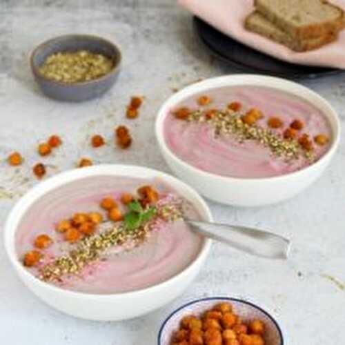 This beautiful purple soup is made with roasted cauliflower.