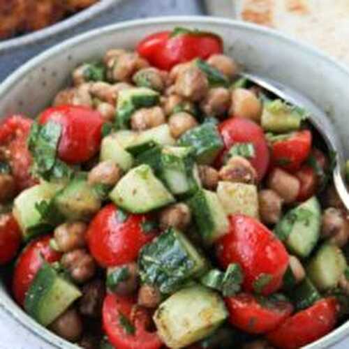 This delicious Middle Eastern salad features crunchy roasted chickpeas and an amazing lemon dressing.