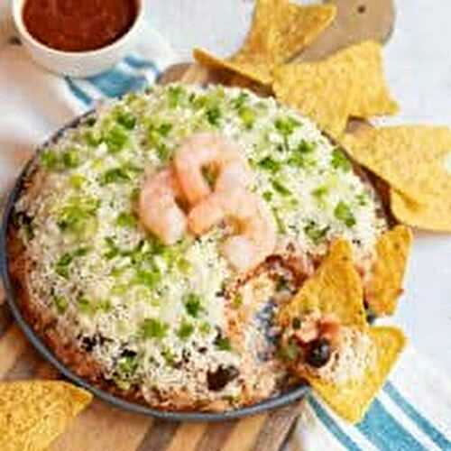 Layered Shrimp Cocktail Dip takes the iconic hors d’oeuvre and amps it up with spicy cream cheese, olives, peppers, onions and Mozzarella cheese.