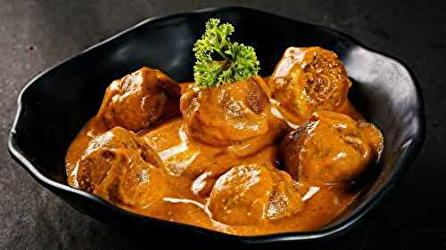 A rich, aromatic Indian curry featuring tender meatballs (koftas) made with minced meat, herbs, and spices, served in a flavorful gravy with lotus stems and potatoes.