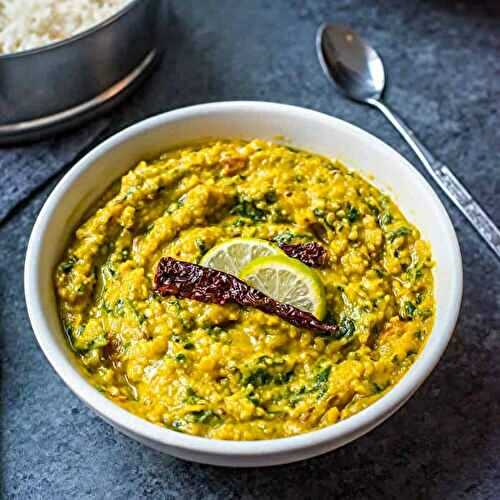 A flavourful curry dish featuring crispy potato shells stuffed with a vibrant mint-coriander chutney, simmered in a spiced spinach and fenugreek gravy.