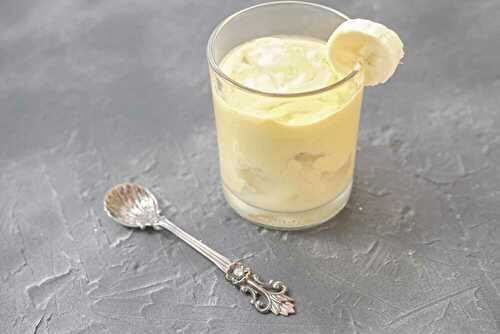 Very fruity smoothie and veggie based on banana, honey and soy milk.