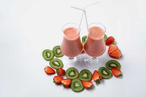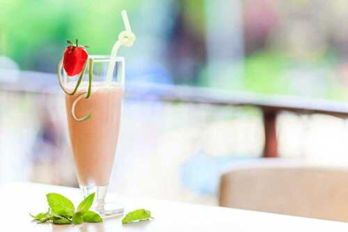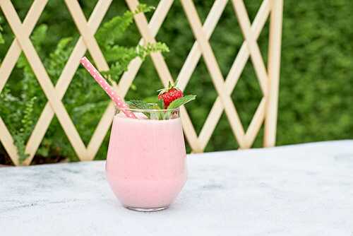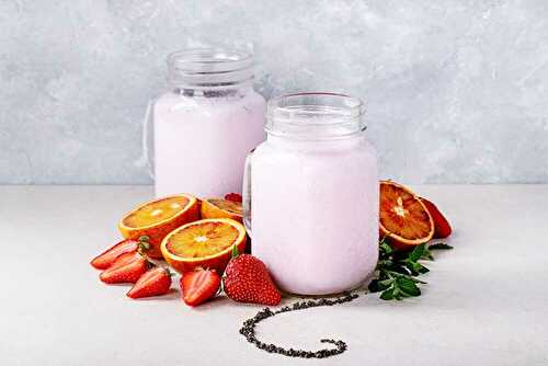 Sugar-free smoothie with tangerine soy milk, strawberries and a touch of vanilla