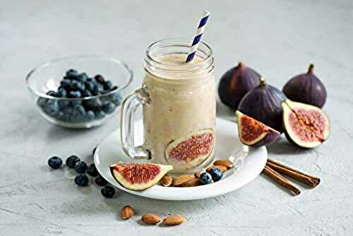 Indulge in the autumnal sweetness with this healthy smoothie featuring figs, blueberries, and nuts.