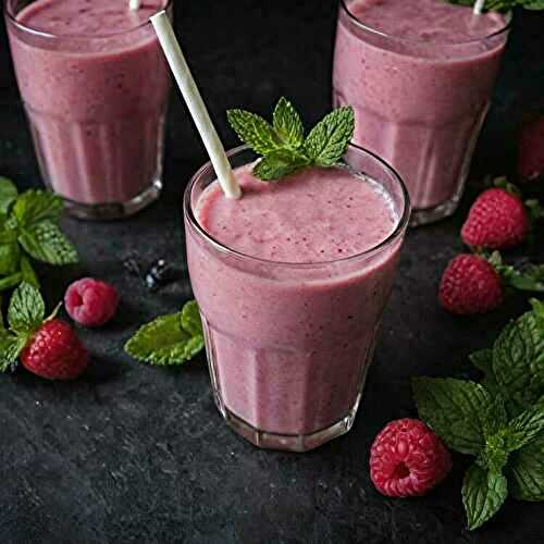 This smoothie blends the refreshing sweetness of kefir with the flavor burst of mixed berries and the freshness of mint.