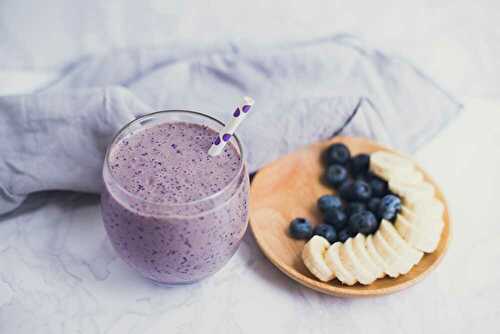 A gourmet smoothie based on banana, blueberry and goat’s milk.