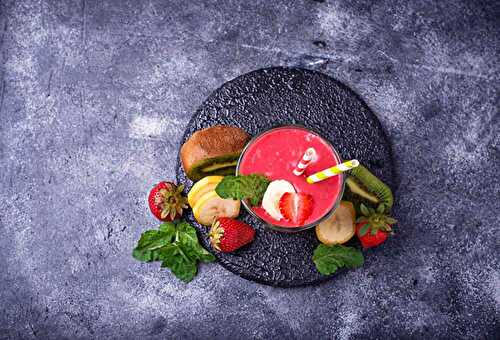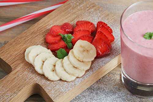 Delicious smoothie made with strawberry and banana and refreshing with a touch of mint.