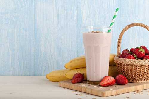 Fresh and light smoothie with strawberries, yogurt and slightly fragrant orange blossom