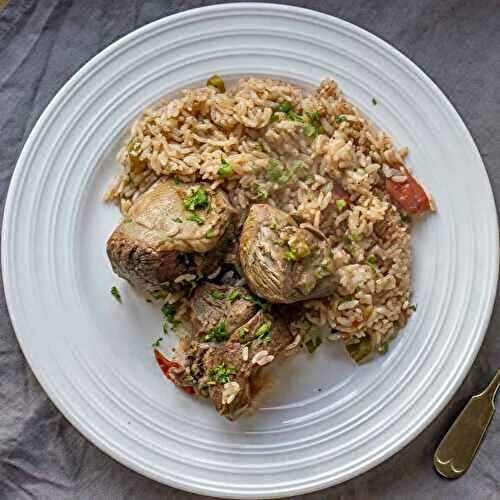 Tomato Rice Pilaf - Domatesli Pilav is a simple side dish made with rice, fresh summer tomatoes, butter, olive oil, and a bit of seasoning.