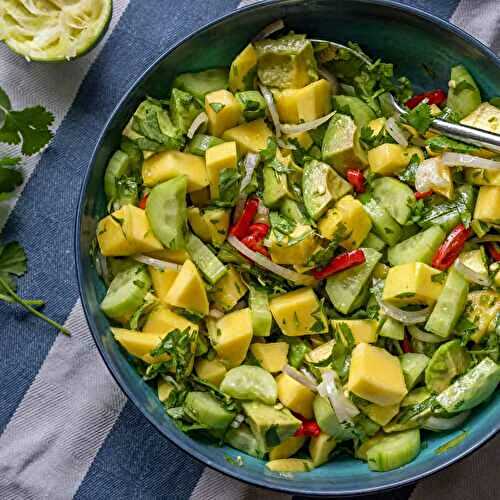 This zesty and colourful Mango Salad with Avocado and Cucumber is packed with flavor and ready in just 15 minutes.