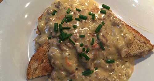 Normally I serve sausage-and-cheese-stuffed (button) mushrooms for an appetizer, but today Zey’s Market had a special on crem.