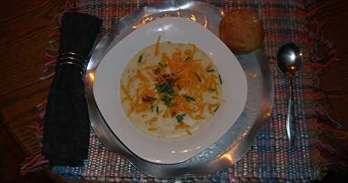 It was cold and rainy Saturday night and we had leftover mashed potatoes so Barry decided to make one last batch of winter soup.