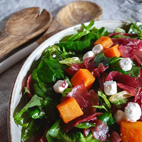 This winter salad with salty bresaola and earthy goats cheese is sure to warm you through on cold nights when you want to eat clean!