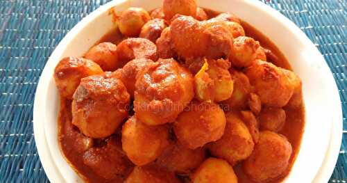 BATATA LOSNE SAUNG This dish is of baby potatoes cooked in a sauce of chillies, garlic and tamarind.