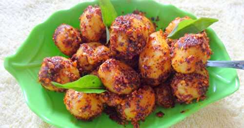 URULAI IDICHA MASALA ( POTATO IN CRUSHED MASALA) We are fond of any dish made with potatoes and baby potatoes in particular.