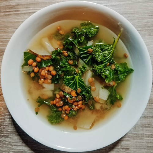 Ready in 15 minutes, this vegan lentil miso soup can be made on the stove or Instant Pot, a simple nourishing vegan dish perfect for a cold day.