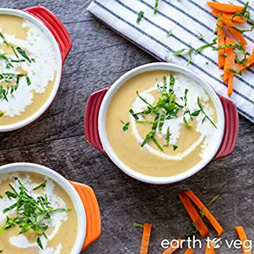 This vegan cream of asparagus soup is light, creamy, and delicately flavoured.