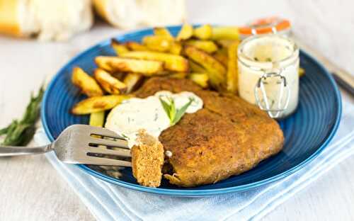 Seitan steak frites with mustard tarragon sauce - a delicious vegetarian / vegan version of the classic French dish, made with homemade seitan!