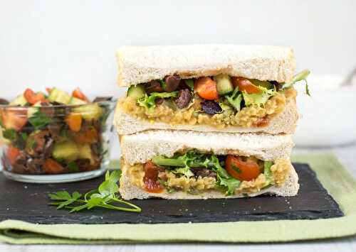 Ultimate vegan sandwich! With red lentil spread and a super simple crunchy salad.