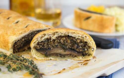 Vegetarian haggis and mushroom wellington - veggie haggis is DELICIOUS! This wellington is perfect for a Scottish Burns Night supper.