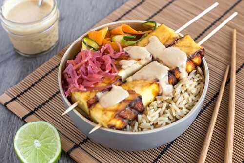Paneer satay bowls - this peanut butter satay sauce is seriously easy to make! A brilliant vegetarian version of chicken satay.