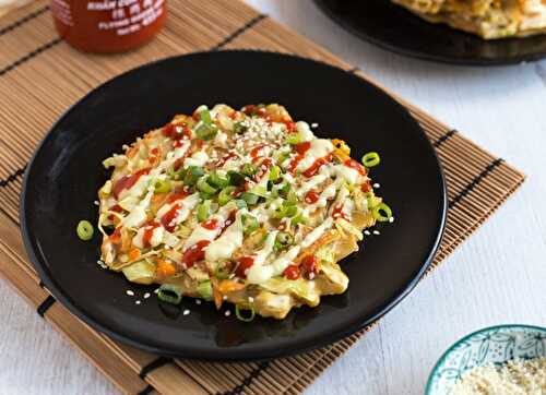 These vegetarian okonomiyaki are an easy version of the traditional Japanese dish - perfect little cabbage pancakes that are far tastier than they have any right to be!