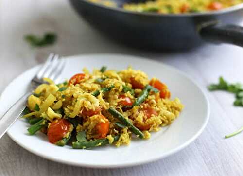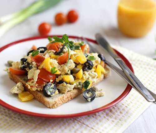A healthy breakfast that's quick and easy to make - Mediterranean scrambled eggs, packed with veggies!