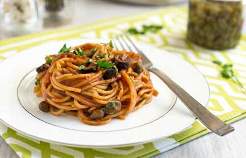 This one pot spaghetti alla puttanesca makes a seriously quick and easy dinner - and it's unbelievably delicious! Saucy, spicy, salty.
