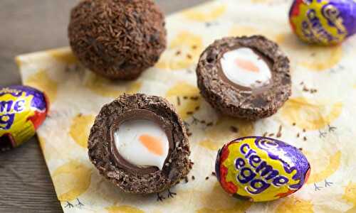 These Scotch Creme Eggs are the perfect indulgent Easter treat! Coated in chocolate brownie and sprinkles, with gooey Cadbury Creme Eggs inside.