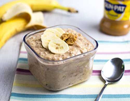 These banana and peanut butter overnight oats are just the thing for a busy morning - just grab the tub from the fridge and you're good to go!
