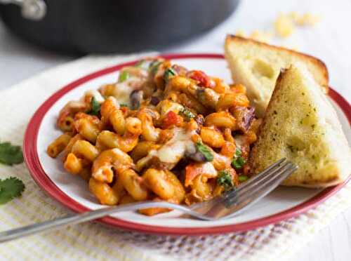 This vegetarian chilli mac is a delicious cross between chilli and macaroni cheese.