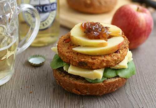 These ploughman's burgers combine your favourite ploughman's lunch with a simple veggie burger.