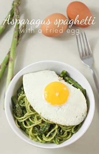 A super simple asparagus spaghetti recipe, topped with a fried egg - quick, easy, cheap and delicious!