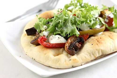 Simple curried vegetable flatbreads, topped with salad leaves and a good dollop of cooling Greek yogurt - an easy, healthy and delicious lunch or dinner!