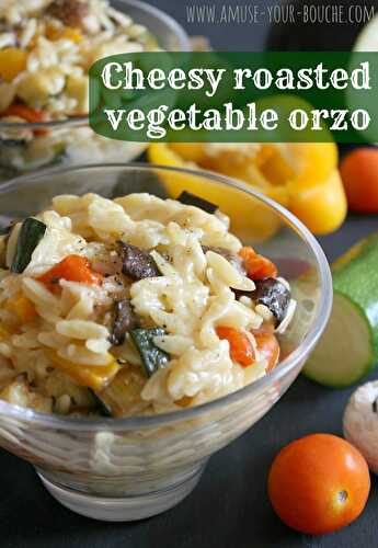 This cheesy roasted vegetable orzo is a version of macaroni cheese that's full of rich flavours from the roasted vegetables.