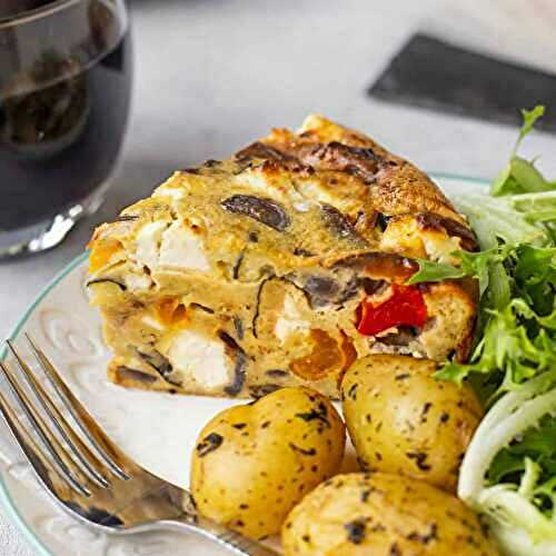 This tasty vegetarian crustless quiche is packed with roasted vegetables and chunks of feta cheese - so much flavour, and no pastry!