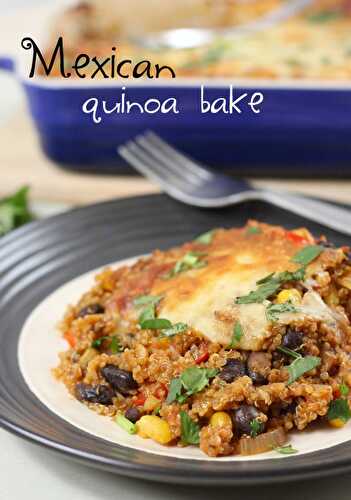 This Mexican quinoa bake will please vegetarians and meat-eaters alike - fluffy quinoa with enchilada sauce, beans, veggies and a crispy, cheesy topping!