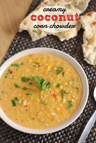 This creamy corn chowder recipe is made vegan with coconut milk instead of dairy - slightly sweet, slightly spicy, and completely delicious!