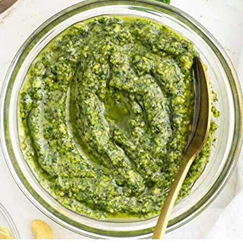 Take 5 minutes to make this quick homemade vegan pesto without expensive pine nuts but full of flavor!