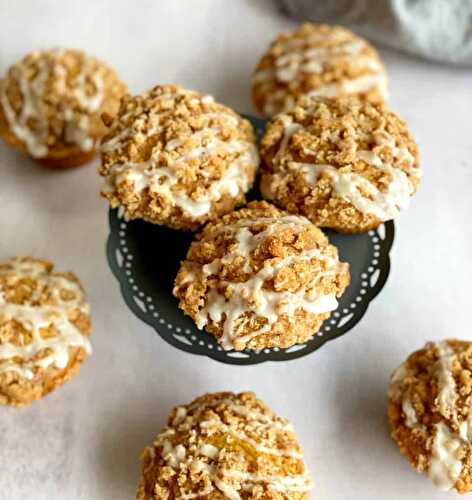 These Pumpkin Banana Muffins are easy to make, moist, and delicious with a homemade streusel topping and vanilla glaze!