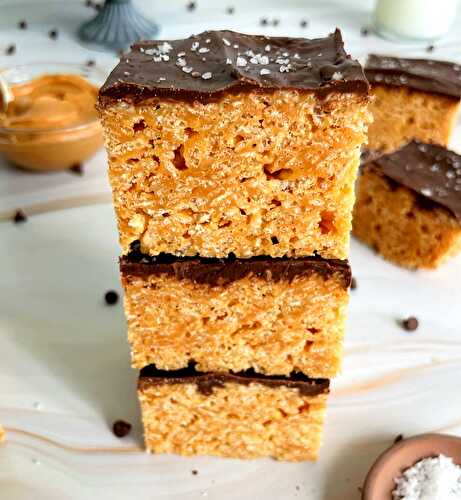 Take your favorite childhood treat to a whole new level with these Peanut Butter Chocolate Rice Krispie Treats!