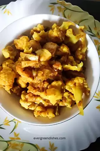 Aloo Gobhi is a tasty side dish made with potato and cauliflower florets.
