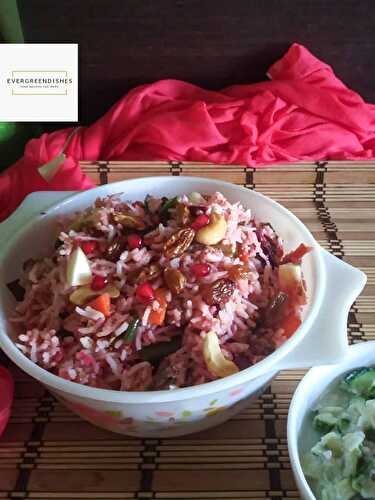 Mughlai vegetable pulao is a delicious rice dish prepared with coconut and other spices, cooked with assorted vegetables and garnished with fruits and nuts