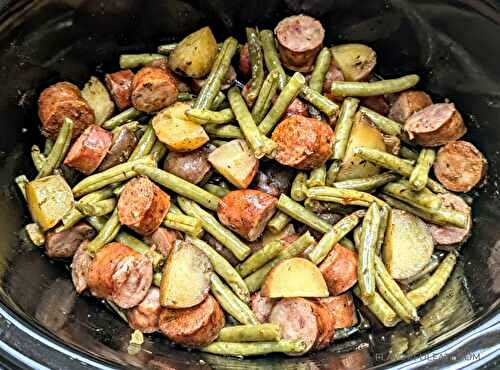 Slow Cooker Cajun Sausage, Green Beans, and Potatoes combines smoky, spicy sausage with tender green beans and potatoes, all cooked with creamy butter and Cajun spices.