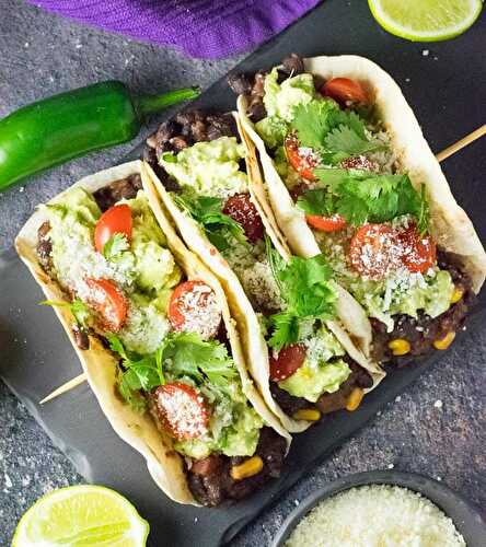 These Black Bean Tacos are loaded with boldly seasoned black beans and chunky guacamole, creating a healthy and satisfying family dinner that is ready to serve in only 10 minutes!