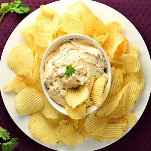This chipotle chip dip recipe is delectably creamy and full of the deep smoky flavors of chipotle peppers.