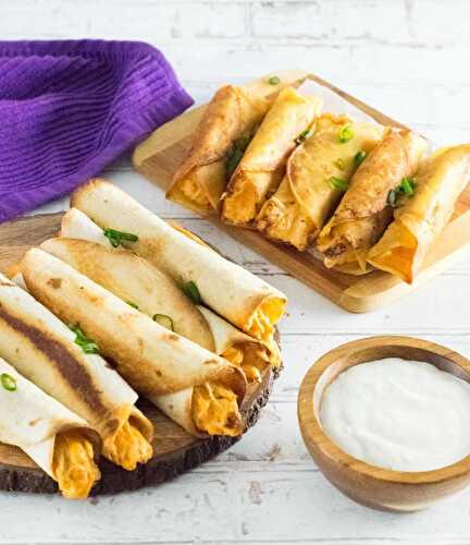 These buffalo chicken taquitos are loaded with buffalo sauce, shredded chicken, and cheese, and they can be baked or fried!
