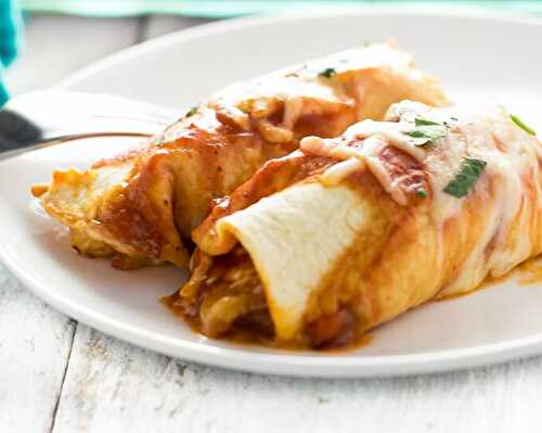 These Easy Chicken Enchiladas are as stupidly simple to make as they are flavorful! Each bite bursts with tender chicken, gooey cheese, and big enchilada flavor!