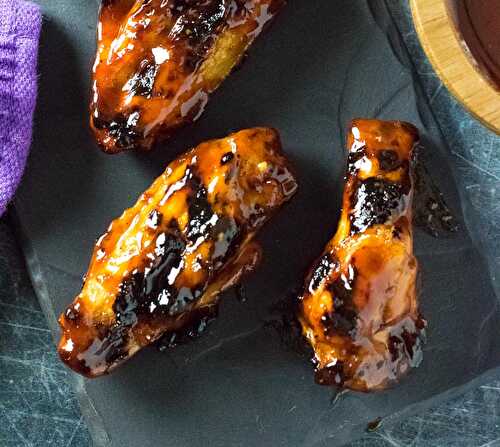 These flamed kissed grilled BBQ chicken wings are lacquered in a delectably sticky barbecue sauce and grilled to smoky perfection.